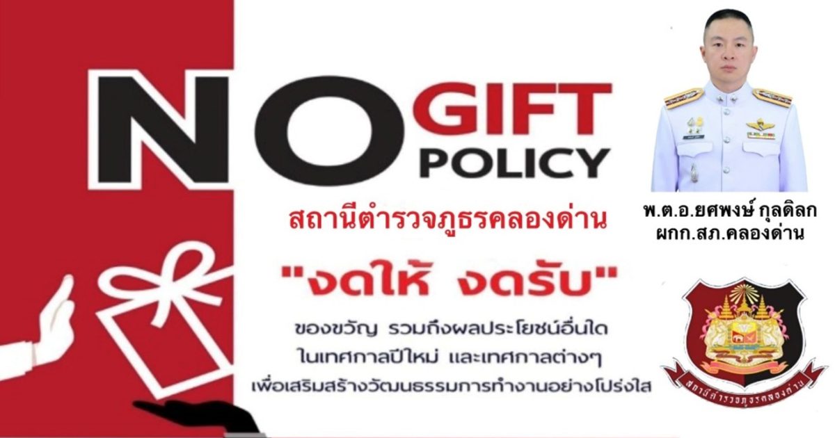 ข้าราชการตำรวจทุกสายงาน ร่วมประกาศ ไม่ให้ ไม่รับ และจะต่อต้านการทุจริตทุกรูปแบบ (NO GIFT POLICY)