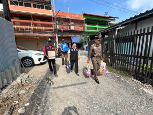 พร้อมข้าราชการตำรวจชุมชน ได้ร่วมกันนำสิ่งของ อาทิ เช่น กระติกน้ำร้อน ข้าวสาร อาหารแห้ง มาม่า ปลากระป๋อง และของใช้อื่นๆ อีกจำนวนมาก พร้อมด้วยเงินสดจำนวนหนึ่งมามอบให้ คุณยายบุญอายุ 93 ปี ซึ่งยังต้องทำงานรับจ้างทำปลาเค็มขายเนื่องจากต้องดูแลลูก อายุ 70 ปี คือ ป้าบล และลุงลำดวน ที่ดูแลตัวเองไม่ได้ พร้อมทั้งหลาน ที่ยังเรียนหนังสือ อีก 1 คน ในซอยวัดสร่างโศก ม.6 ตำบลคลองด่าน