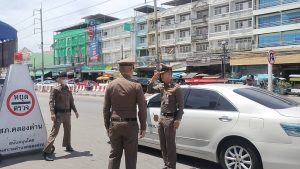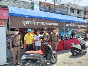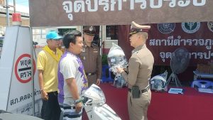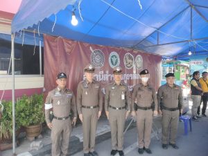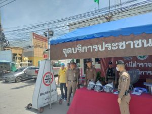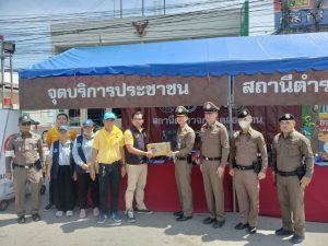 พ.ต.อ.ยศวัจน์ งามสง่า รอง ผบก.ภ.จว.สมุทรปราการ ได้มาตรวจเยี่ยม จุดบริการประชาชน ช่วงเทศกาล สงกรานต์ 2568 หน้าตู้ยามตลาดคลองด่าน พบ พ.ต.อ.ยศพงษ์ กุลดิลก ผกก.สภ.คลองด่าน , พ.ต.ท.ปกครอง ตมิศานนท์ รอง ผกก.ป.ฯ , พ.ต.ท.สุชาติ ถานอาจนา หน.จร.ฯ, พ.ต.ต.เกริกไกร จันทร์จิตร์ สวป.ฯ พร้อมข้าราชการตำรวจ ฝ่ายปกครอง เจ้าหน้าที่สาธารณสุข อยู่ประจำจุดรายงานเหตุการณ์ปกติ ได้มอบสิ่งของเครื่องดื่มให้กับเจ้าหน้าที่ประจำจุดตรวจ กำชับให้ ผู้ปฏิบัติ ปฏิบัติหน้าที่ ด้วยความ ระมัดระวัง และประชาสัมพันธ์รณรงค์ตามโครงการขับขี่ปลอดภัย สวมหมวกนิรภัยเพื่อลดอุบัติเหตุจราจรทางบก ในช่วงเทศกาลสงกรานต์ พ.ศ.2568