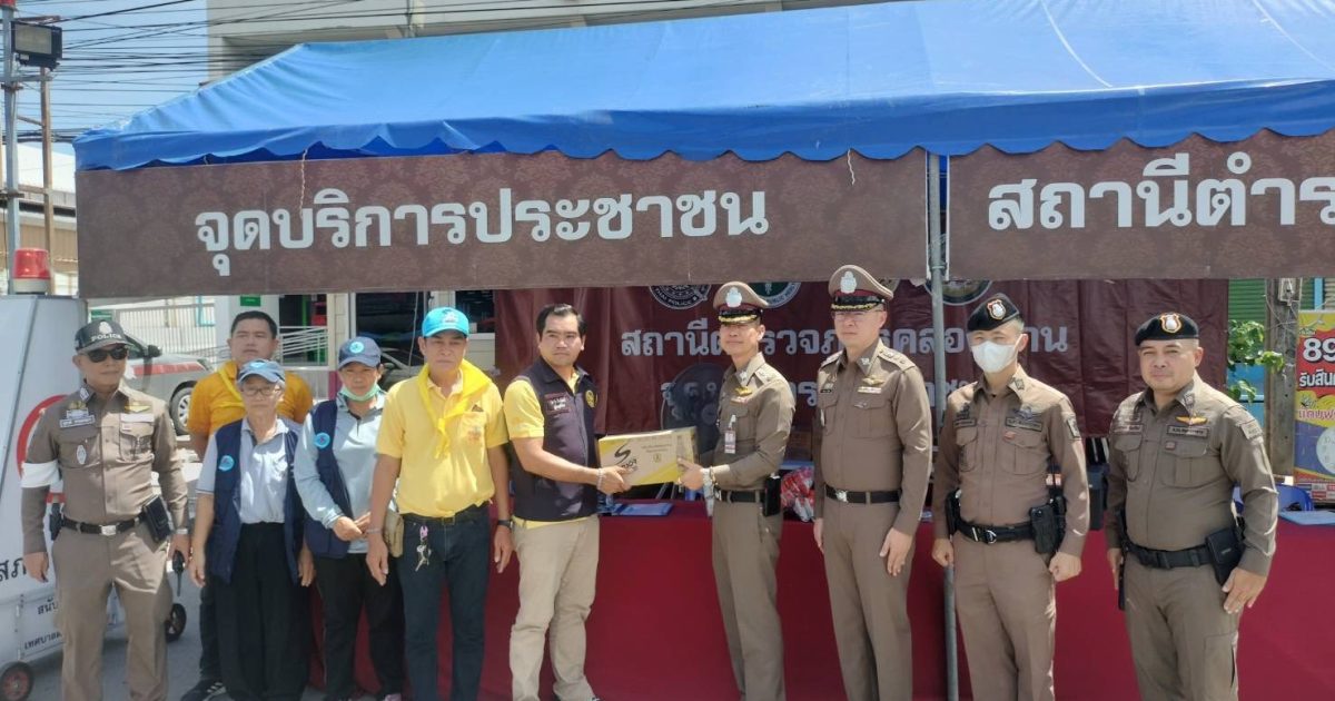 พ.ต.อ.ยศวัจน์ งามสง่า รอง ผบก.ภ.จว.สมุทรปราการ ได้มาตรวจเยี่ยม จุดบริการประชาชน ช่วงเทศกาล สงกรานต์ 2568 หน้าตู้ยามตลาดคลองด่าน พบ พ.ต.อ.ยศพงษ์ กุลดิลก ผกก.สภ.คลองด่าน , พ.ต.ท.ปกครอง ตมิศานนท์ รอง ผกก.ป.ฯ , พ.ต.ท.สุชาติ ถานอาจนา หน.จร.ฯ, พ.ต.ต.เกริกไกร จันทร์จิตร์ สวป.ฯ พร้อมข้าราชการตำรวจ ฝ่ายปกครอง เจ้าหน้าที่สาธารณสุข อยู่ประจำจุดรายงานเหตุการณ์ปกติ ได้มอบสิ่งของเครื่องดื่มให้กับเจ้าหน้าที่ประจำจุดตรวจ กำชับให้ ผู้ปฏิบัติ ปฏิบัติหน้าที่ ด้วยความ ระมัดระวัง และประชาสัมพันธ์รณรงค์ตามโครงการขับขี่ปลอดภัย สวมหมวกนิรภัยเพื่อลดอุบัติเหตุจราจรทางบก ในช่วงเทศกาลสงกรานต์ พ.ศ.2568