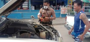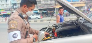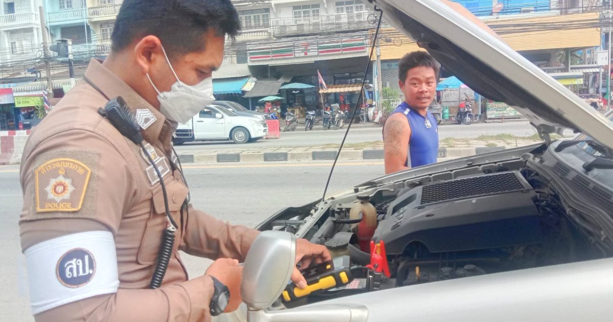 งานจราจรจึงได้เข้าตรวจสอบ พบว่ามีปัญหาเรื่องแบตเตอร์รี่ จึงได้นำเครื่องชาร์จแบตเตอร์รี่รถยนต์แบบพกพามาให้การช่วยเหลือ จนสามารถติดเครื่องยนต์ได้สำเร็จ