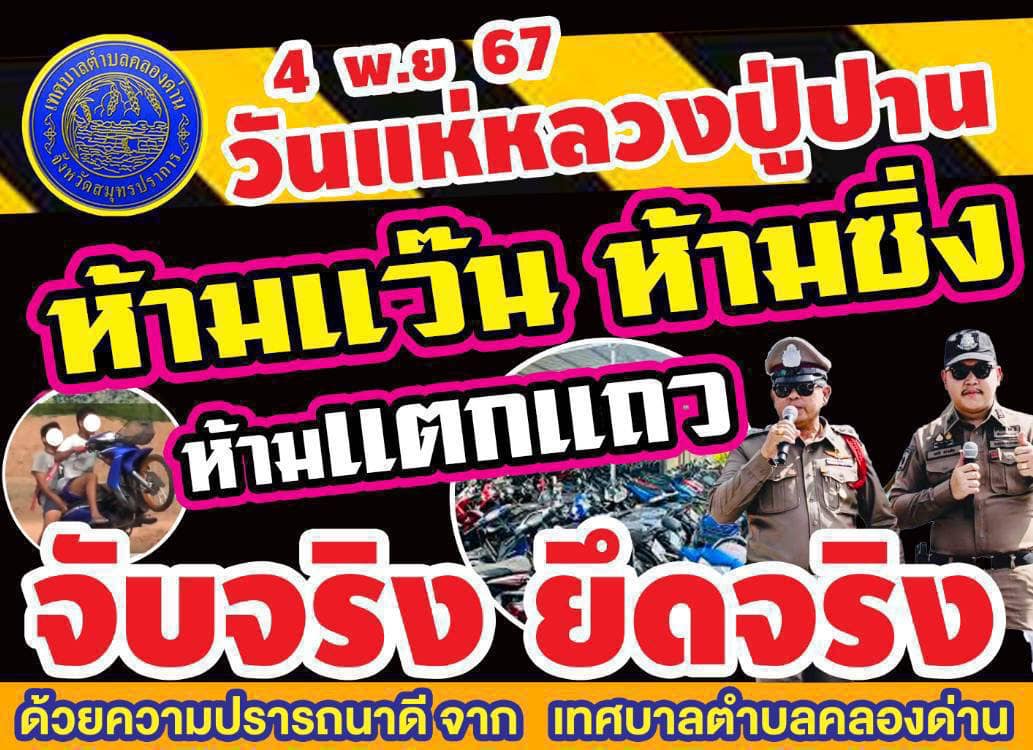 ประชาสัมพันธ์ ”ห้าม แว๊น ห้ามซิ่ง ห้ามแตกแถว จับจริง ยึดจริง “จาก เทศบาลตำบลคลองด่าน