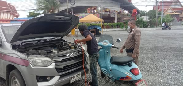 ช่วยเหลือประชาชนรถจักรยานยนต์ไม่สามารถติดเครื่องได้